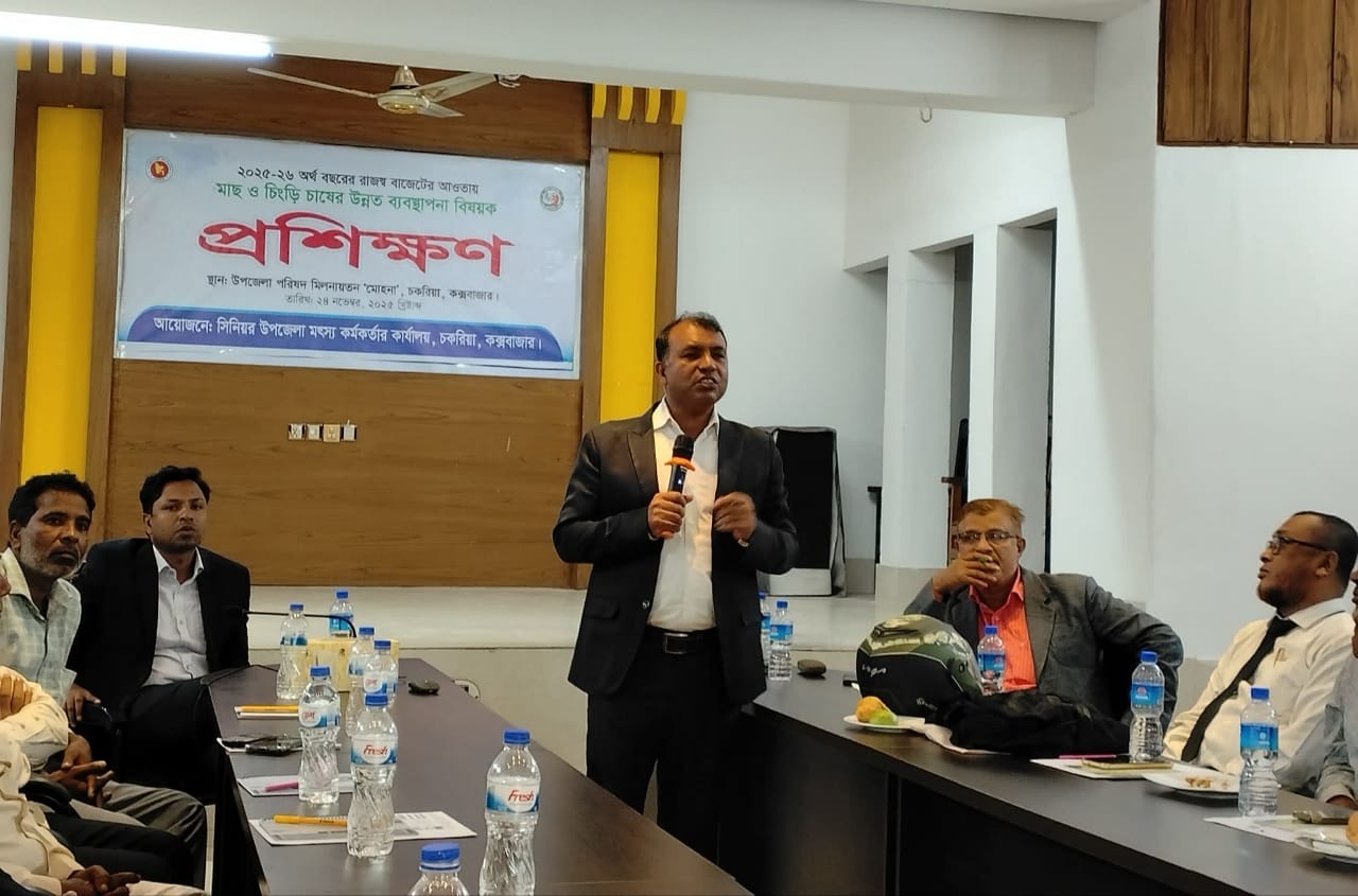 মৎস্য চাষি ও ঘের মালিকদের নিয়ে চকরিয়া উপজেলা পরিষদের সম্মেলনকক্ষ মোহনা মিলনায়তনে মাছ ও চিংড়ি চাষের উন্নত ব্যবস্থাপনা বিষয়ক এক প্রশিক্ষন অনুষ্ঠিত হয়েছে।
